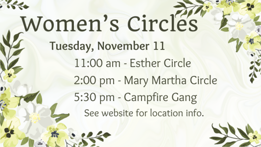 Women's Circle Meetings Tuesday, Nov. 11 Times & Locations below. All ladies are w…