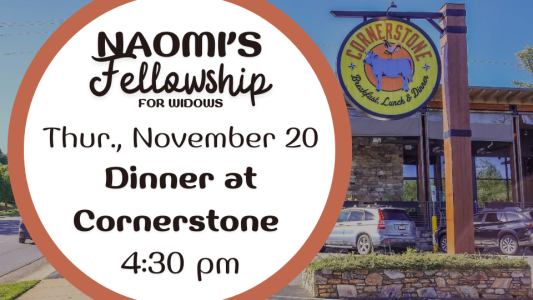 NAOMI'S FELLOWSHIP will gather for an early supper at CORNERSTONE RESTAURANT (102 Tunne…